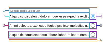 Radio buttons are displayed in a group with horizontal dividers at the top and bottom to separate the available options from the rest of the views on the page. The title is left justified, but the available option names and their action icons are right justified.