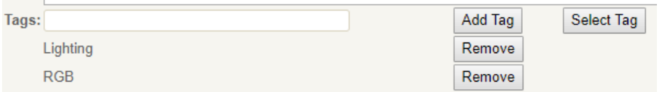Select Tag has a prepopulated list of common tags to choose from. Entering text into the box and clicking Add Tag will add terms for users to search by in the updater. We recommend looking for appropriate tags first, if you do not see applicable tags simply add them. Compatible hardware models are a good example of tags that you may need to add.