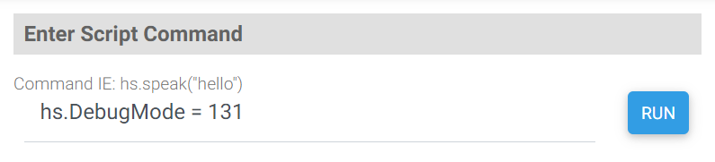 Debug mode can also be turned on from the the HS4 web interface by navigating to Tools > Script Commands and running the script command.
