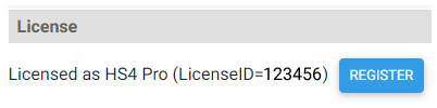 Click the REGISTER button to edit or change your license ID and password. This is useful when upgrading a trial license or moving from one edition of HS4 to another.