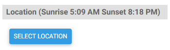 This setting allows HS4 to calculate sunrise and sunset times for your system. Click the SELECT LOCATION button to select the worldwide location that's closest to your HS4 installation.
