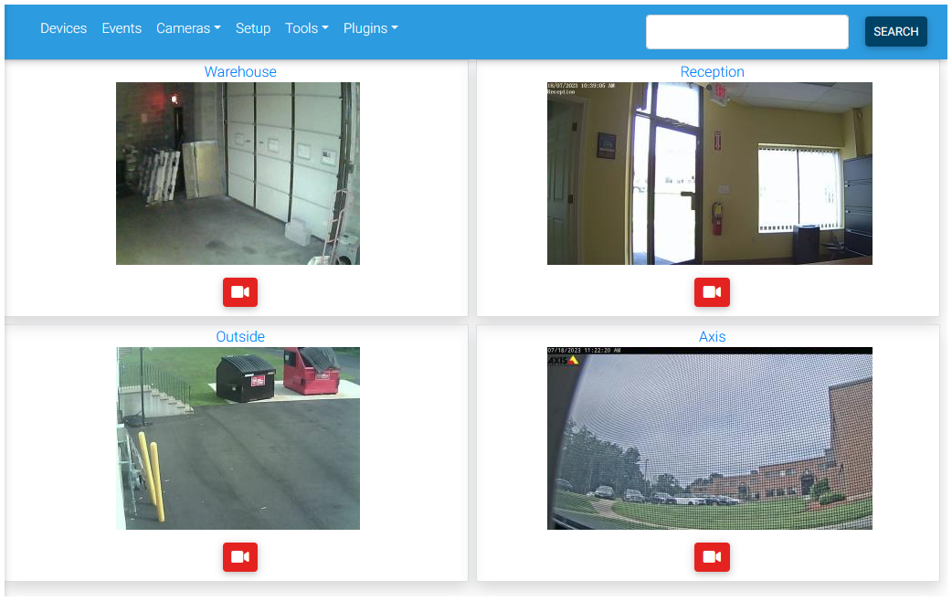 The live view will display a snapshot URL image of all cameras in a grid. These images will update every few seconds.