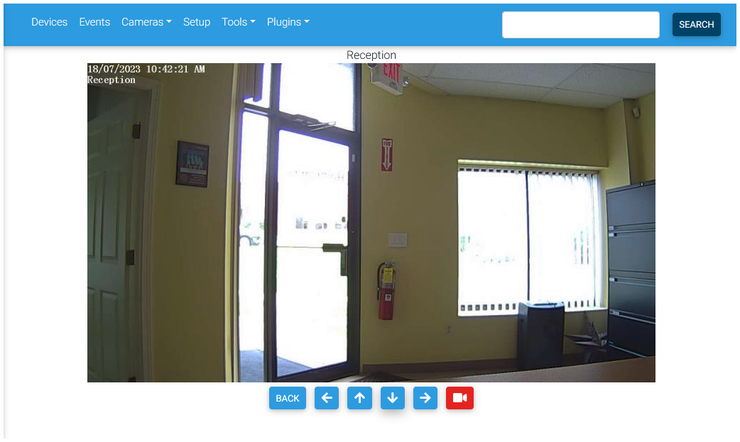 HS4 includes features to view security cameras. The camera Live view may be accessed from the Cameras drop down menu in the main tool bar.