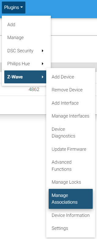 - Navigate to Plugins > Z-Wave > Manage Associations
