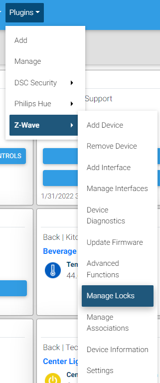 - Navigate to Plugins > Z-Wave > Manage Locks