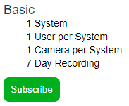 The Basic plan includes 1 system, 1 user (your primary login), 1 cloud connected camera for recording with 7 days of recording.
