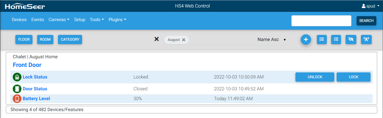 This plugin is designed to allow HomeSeer HS4 to monitor and control August Home door locks. These features are supported: