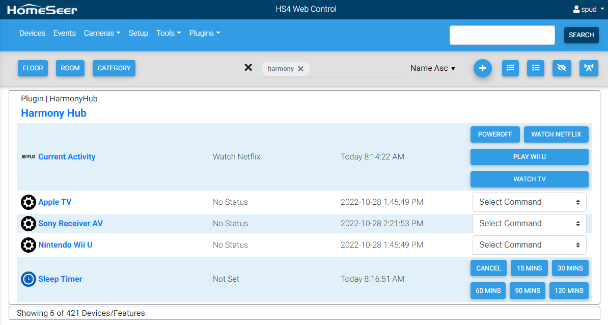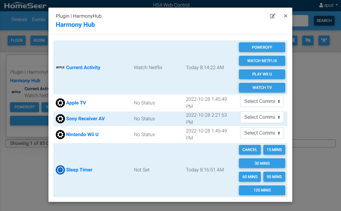 This plugin is designed to allow HomeSeer HS4 to monitor and control Harmony Hubs. These features are supported: