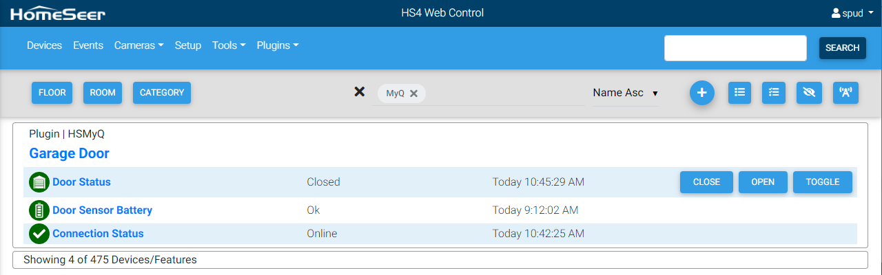 This plugin is designed to allow HomeSeer HS4 to monitor and control MyQ garage door controllers. These features are supported: