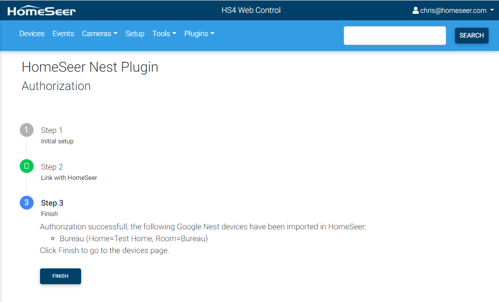 You will be redirected to the Google Nest plugin Authorize stepper you just left, and it will bring you to the final step.
