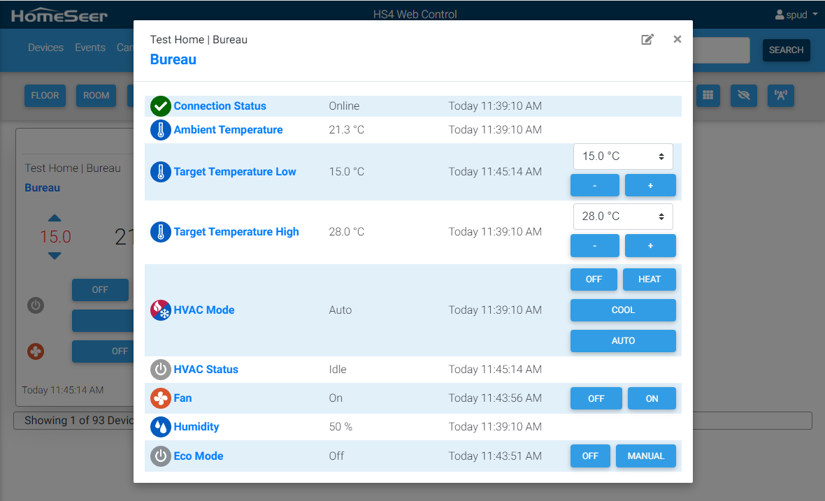 - Allows HS4 to control target temperatures, HVAC mode, fan mode, and eco mode.