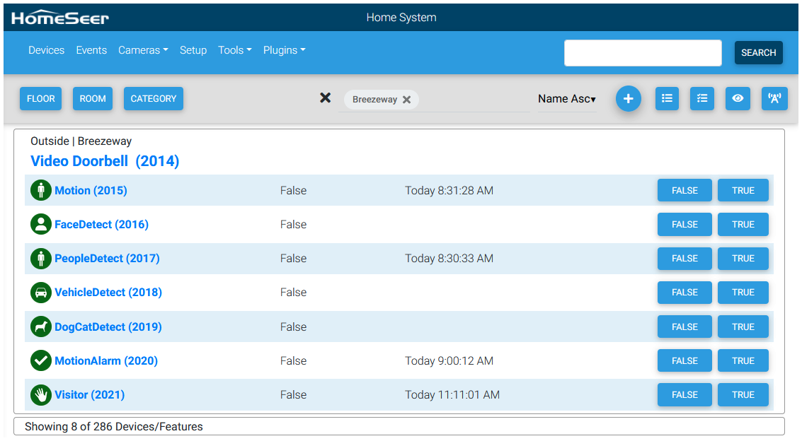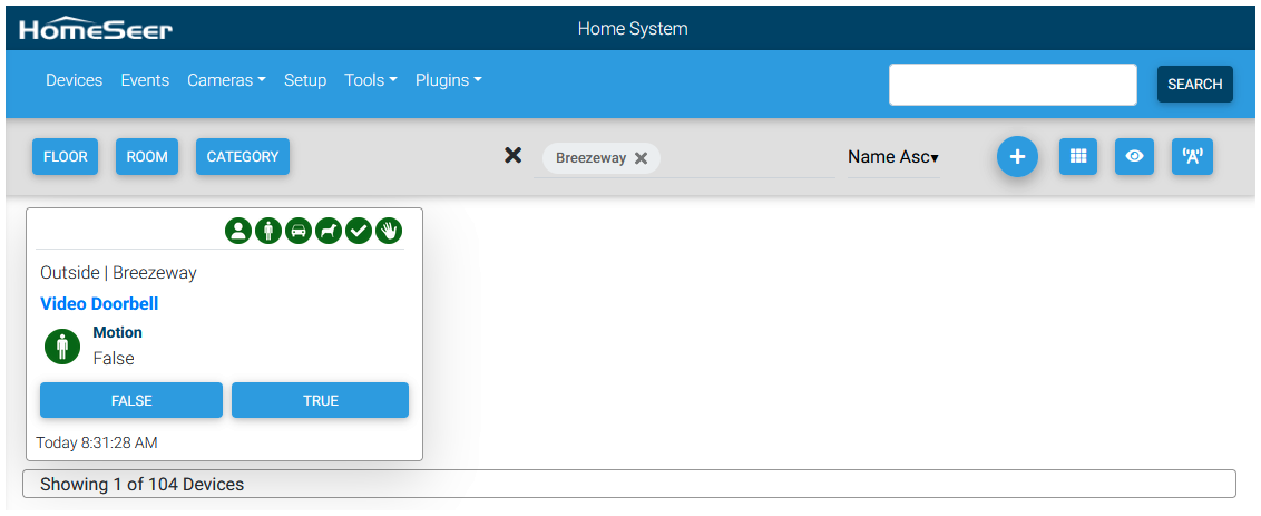 - After adding your camera a device is created in HomeSeer. This device may not show any features on the device until the device actually sends an event.