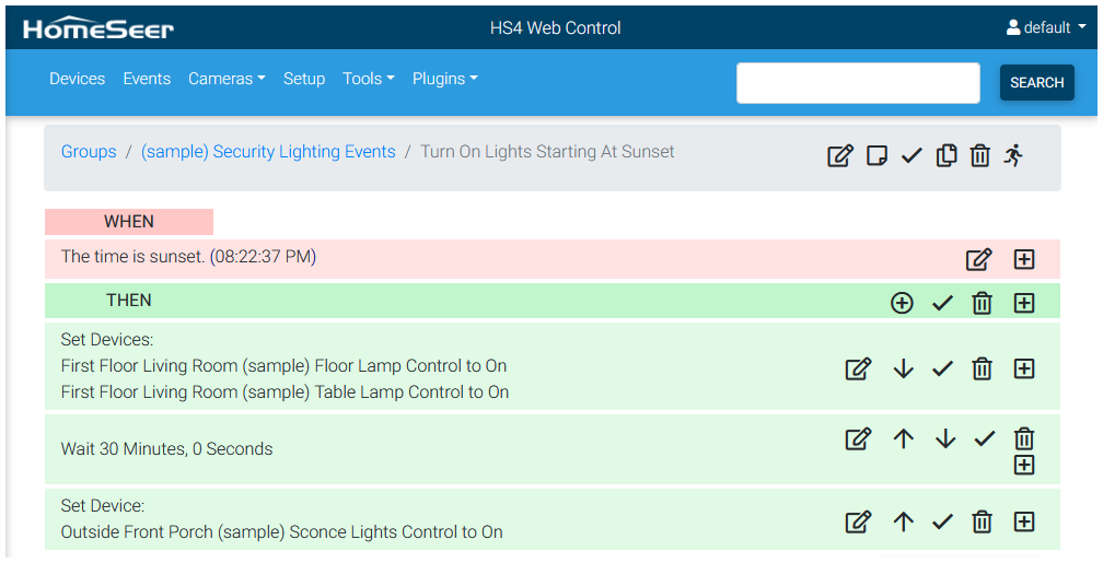 | Turn On Lights Starting At Sunset | Time Becomes Sunset | Living Room Floor Lamp Turns On Living Room Table Lamp Turns On Wait 30 Minutes Front Porch Sconce Lights Turn On |