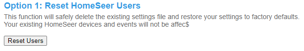 - Click Reset Users under Option 1.