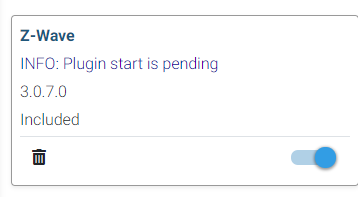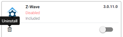 - Disable and uninstall your current Z-Wave plugins. Click the toggle on the bottom right to disable and then the trash can to uninstall.