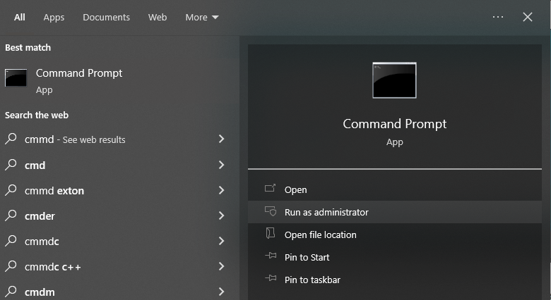 - Open the Windows command prompt with Run As Administrator privileges