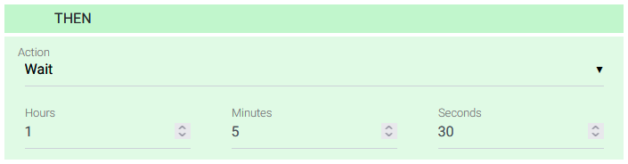 This event action is designed to pause the execution of an event for a specific period of time. The action may be accessed by selecting Wait from the action group menu. Simply enter your time value an save.