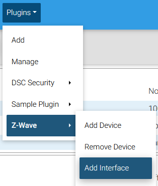 Navigate to Plugins > Z-Wave > Add Interface to access the stepper for adding the Z-Net to your system.