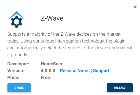 HomeSeer's Z-Wave plugin supports a majority of the Z-Wave devices on the market today. Using our unique interrogation technology, the plugin can automatically detect the features of the device and control it properly. The plugin also supports customizing the device using device parameters as supporting firmware updates. Not compatible with other Z-Wave plugins.